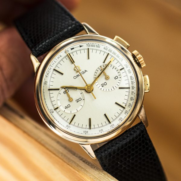 The 1963 Omega Caliber 321 Chronograph in 18k yellow gold is a pristine collector’s timepiece, renowned for its precise manual-wind movement and timeless design. Crafted with exceptional attention to detail, this flawless watch combines historical significance with luxury, offering expert enthusiasts a rare opportunity to own an iconic chronograph that exemplifies enduring quality and mechanical excellence.